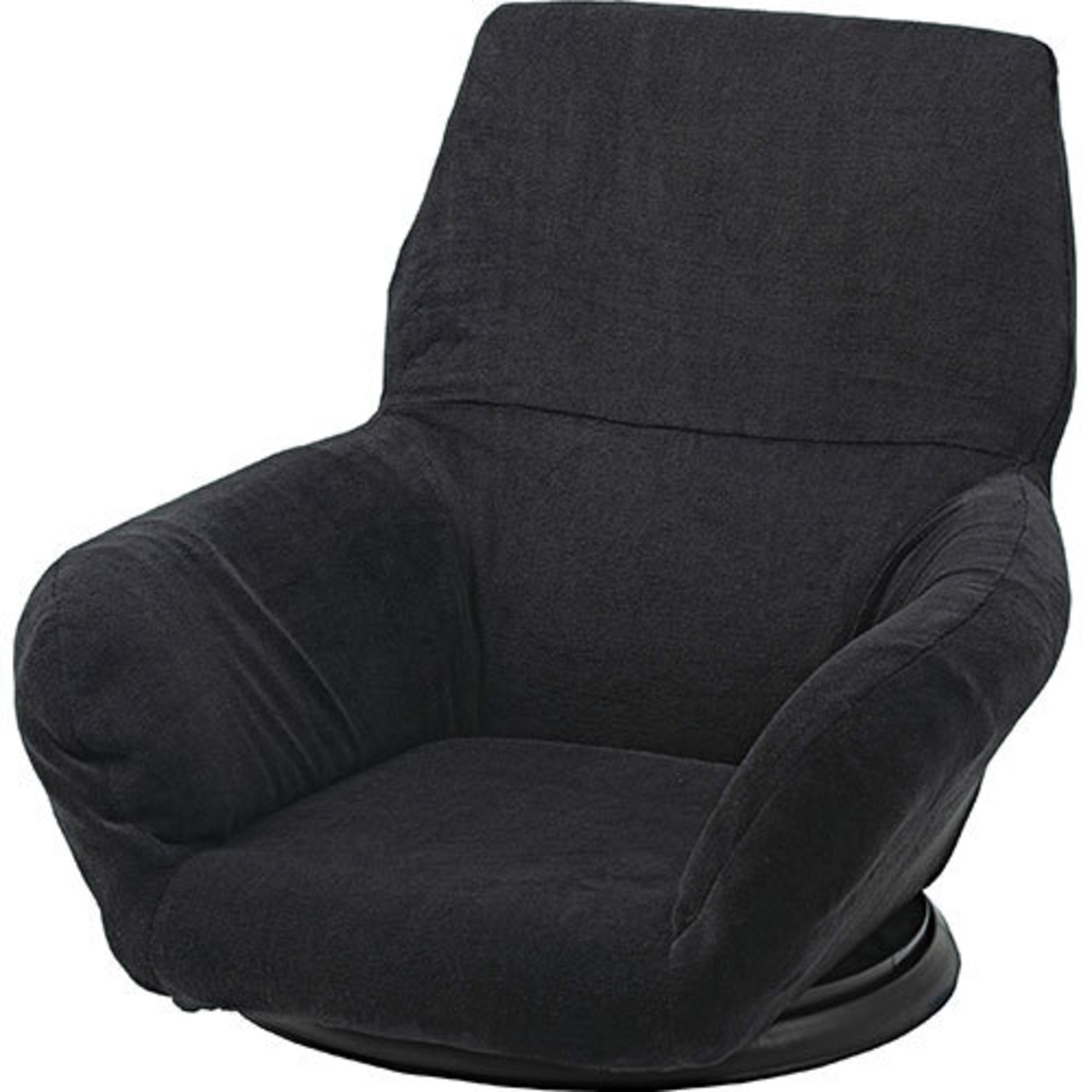 ●360度回転するので座ったまま向きを変えられ、狭いスペースでも動きやすさをサポートするフロアチェア。●柔らかい触感の生地が体を優しく包み込んでくれます。●バケットタイプで包み込まれるような座り心地を体感でき、長時間座っても疲れにくい設計のフロアチェア。●肘掛けが付いているので立ち座りがしやすく、安定感のある座り心地。●ロースタイルでのお仕事用から、テレビや動画を見る時のリラックスタイム用など幅広く使えます。●厚みがありふかふかとした背もたれも、ゆったりと座れるポイント。●背もたれを前に倒せばコンパクトサイズに。持ち運びが簡単で省スペース収納も出来るので便利です。●回転台が付いている分、わずかに座面が高くなっているので足を伸ばしても座りやすい仕様。